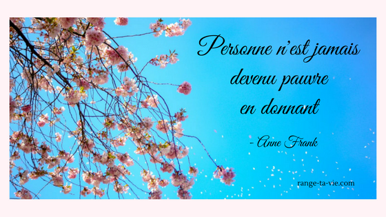 Aujourd’hui, c’est la journée internationale de la charité. Alors les choses que vous gardez depuis si longtemps dans vos placards ou au fond de la cave en espérant – peut-être – un jour les vendre, donnez-les! Faire une brocante, vendre sur internet… ça prend du temps! Et ça n’est vaut pas toujours la peine. Tout ce qui est inutile chez vous sera probablement utile ailleurs. Vous verrez qu’en faisant de la place dans vos armoires, des choses incroyables peuvent entrer dans votre vie!