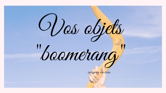 Pour les boomerangs que vous lancez: ces objets déposés chez les autres ne sont-ils pas, en réalité, une façon de repousser une décision à prendre une fois pour toute? Tout est question de responsabilités… Posez-vous un instant et demandez-vous: « Qu’est-ce qui m’empêche vraiment de me séparer de cet objet? »